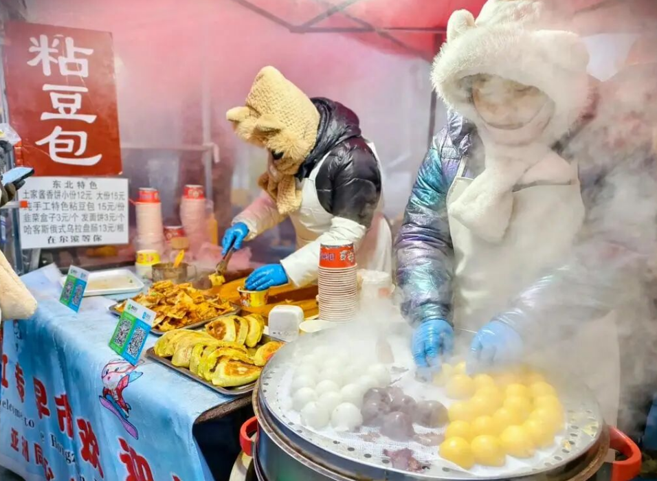 浓浓的年味还藏在早市、饭店的烟火气里,热气腾腾的杀猪菜,蒸笼里散发着谷香的黏豆包,还有那地道的锅包肉、红肠、铁锅炖,一口下去,直接让你的味蕾“跳舞”,保证让你记住冰城这独特的味道!