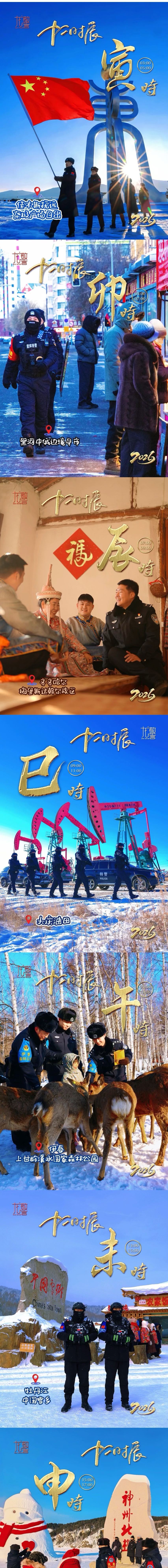 十二个时辰,跨越千里疆域,在这片冰与火交响的黑土地上,他们始终与时光同行。将影子融进每处烟火、每次守望、每程护航,把平安写进每个时辰的刻度里。这便是一日不息、守护不止的黑龙江公安——他们的十二时辰,就是龙江大地平安的十二时辰。