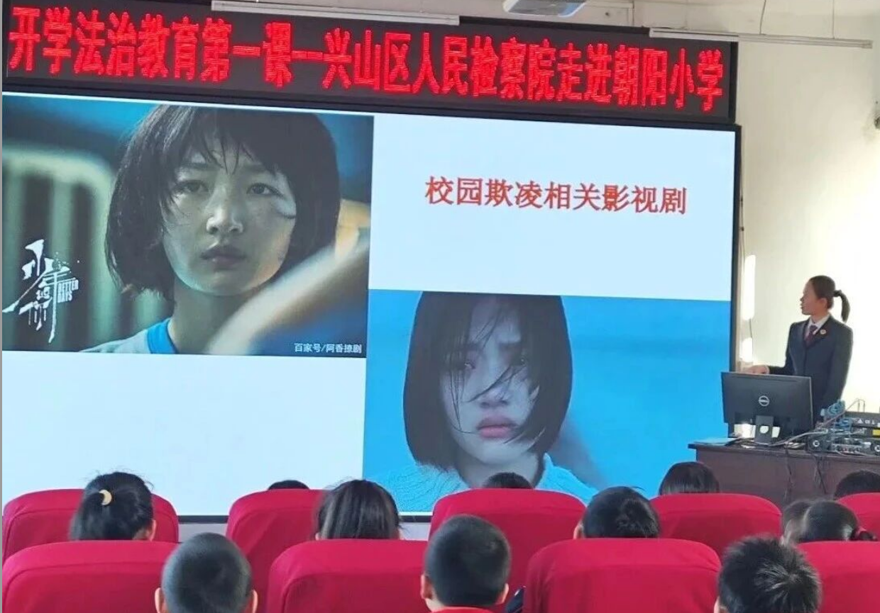 兴山区人民检察院未检团队前往朝阳小学开展“开学第一课·拒绝校园欺凌”主题宣讲活动。课堂上,检察官带领孩子们直击校园欺凌的“真面目”,教孩子学会避险、勇敢说“不”!宣讲中,工作人员结合未成年人身心特点,用真实案例+通俗讲解+互动问答的形式,围绕什么是校园欺凌、校园欺凌的表现形式、种类以及是否构成犯罪等重点内容,以案释法、以法明理。课堂气氛热烈,同学们积极参与互动提问,工作人员逐一耐心解答,并发放法治宣传手册与普法文创礼品,让法治知识听得懂、记得牢、用得上。