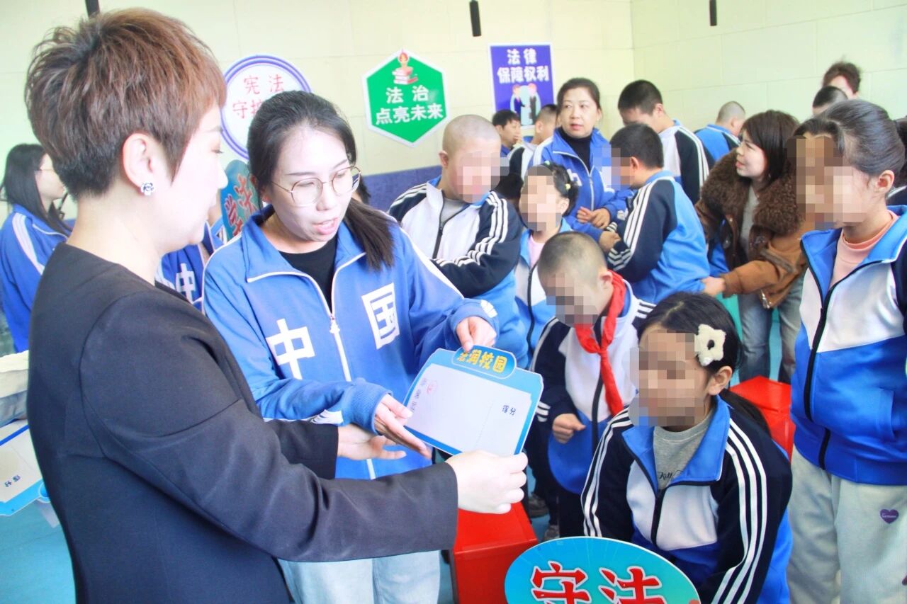 普法互动游戏环节最受学生们欢迎。不同于传统讲座形式,活动紧扣学生的认知特点和兴趣点,设计了“法润校园”萝卜蹲、“法援惠民”套圈答题等趣味闯关游戏。学生、教师、家长与普法志愿者混合组队,在轻松愉快的氛围中协同闯关,边玩边学。每答对一道题便可获得积分兑换法治宣传品。现场欢声笑语不断,掌声连连。