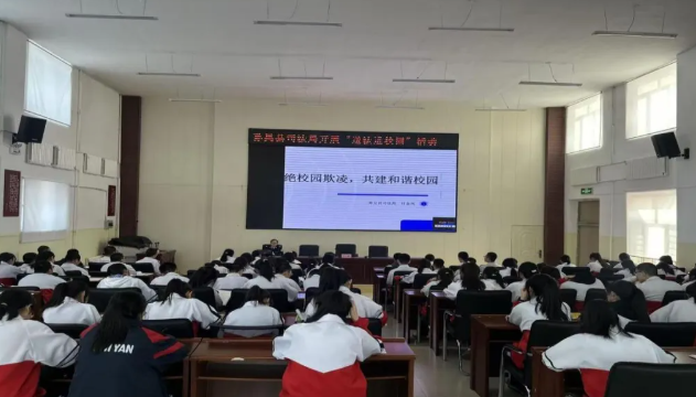 孙吴县司法局组织法治副校长走进孙吴县实验中学,开展“杜绝校园欺凌共建和谐校园”法治宣讲。法治副校长围绕校园欺凌的定义、形式、危害及应对措施展开讲解,通过互动引导学生树立正确理念,并普及相关法律条款,强化学生法治意识。