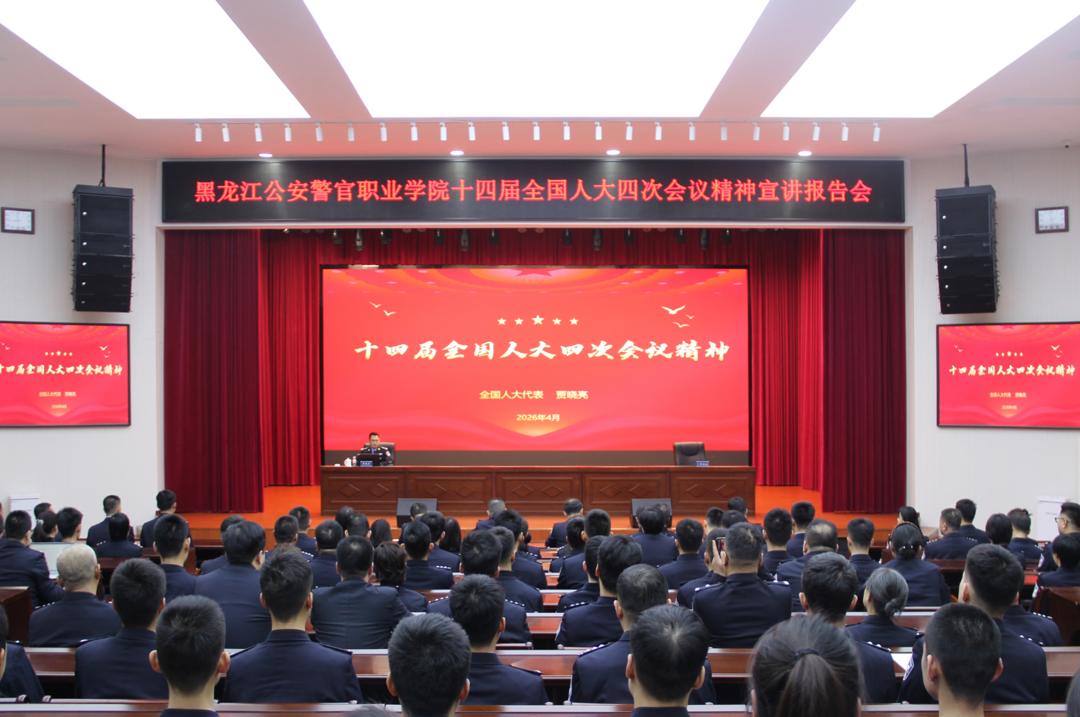 本次宣讲是学院深入学习贯彻2026年全国两会精神,特别是习近平总书记在全国两会期间重要讲话精神的重要举措,旨在准确把握新时代公安教育工作发展方向,进一步提升全院师生政治素养和专业能力。学院将以此次宣讲为契机,持续深化全国两会精神的学习宣传贯彻工作,将两会精神全面融入课堂教学、思政教育和学院文化建设,推动两会精神进课堂、进头脑,为新时代公安事业的高质量发展提供坚实有力的人才支撑。