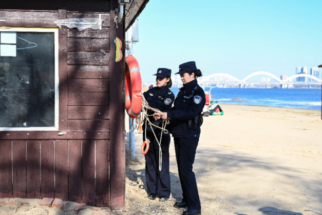“天儿暖和了,有警察同志天天守护着,我们遛弯儿、观景心里也踏实!”一位在江边散步的居民由衷感叹。