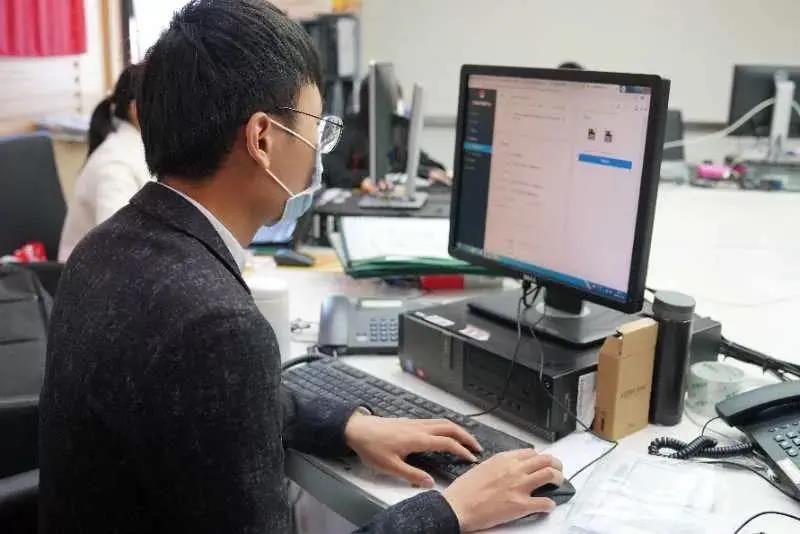 ▲上海徐汇法院知识产权调解团队成员使用调解系统。(张硕洋摄)