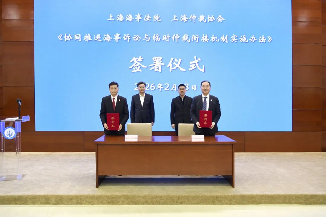 活动中,上海海事法院党组成员、副院长胡永庆与上海仲裁协会会长俞卫锋代表双方签署《协同推进海事诉讼与临时仲裁衔接机制实施办法(试行)》,充分发挥海事诉讼与临时仲裁在纠纷解决方面的各自优势,确立了“法院引导、协会支持、当事人选择”的新协同模式,以航运保险纠纷为先行探索重点领域,通过立案阶段的仲裁意向引导、审理阶段的仲裁条款确认、调解阶段的仲裁方式转化等举措,拓展临时仲裁应用的场景,在充分尊重当事人意愿的基础上,深化司法与仲裁的有机衔接,为实质化解海事纠纷提供更多元的选择,助力上海国际航运中心“航运保险”“海事仲裁”能级提升。