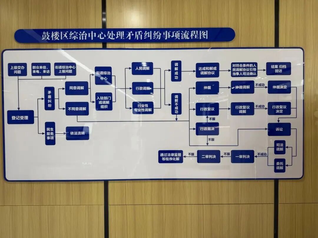 实体平台是“躯干”,工作机制则是“神经中枢”。南京市鼓楼区综治中心创新构建了一套权责清晰、环环相扣的制度体系,确保每一起纠纷都能进入最合适的解决轨道。