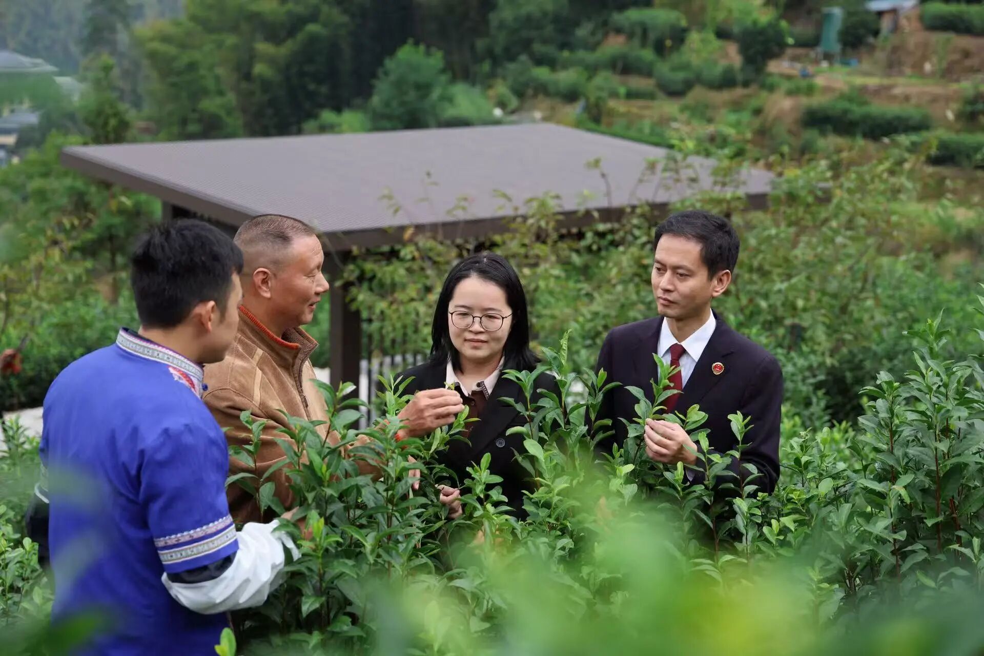 10月28日,浙江省景宁畲族自治县检察院检察官走访景宁惠明茶核心产区,向茶农了解茶叶近况及古茶树生长与管护情况。