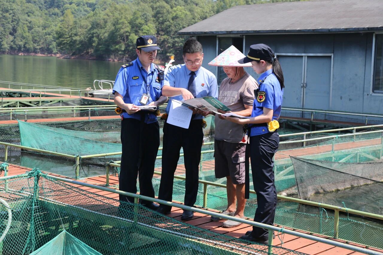 淳安县检察院联动县综合执法局在新安江—千岛湖流域生态环境共同保护合作区水域进行日常巡护并向附近渔民宣传公益诉讼检察工作。