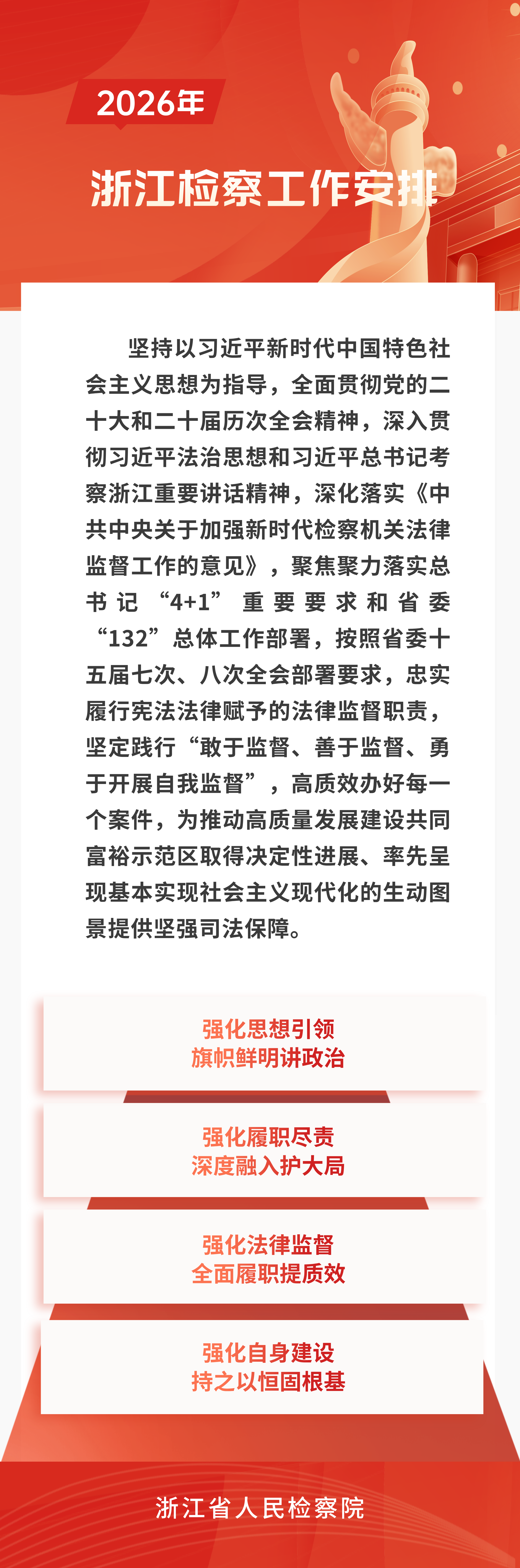 1月15日,在浙江省第十四届人民代表大会第四次会议上,浙江省人民检察院党组书记、检察长林贻影向大会作《浙江省人民检察院工作报告》。