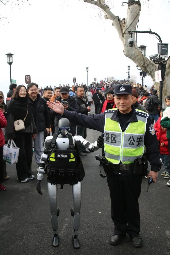 这不,同款“中国功夫机器人”已化身浙江杭州西湖边的“最强员工”,开启新春巡逻模式。