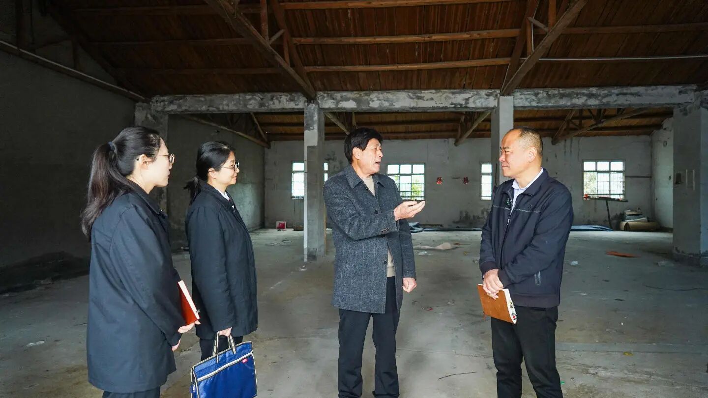 2月4日上午,罗国海(右一)在绍兴市越城区鉴湖街道南池村的一处厂房做现场调解。(姜鑫瑜 钟洲明 摄)