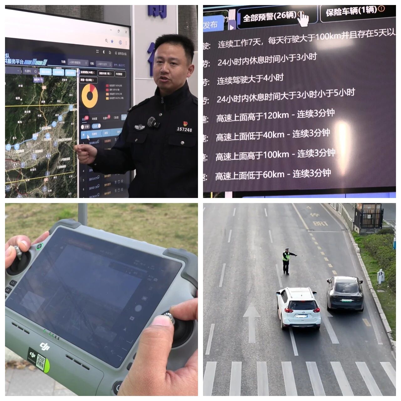 【金华】“智慧大脑”防疲劳,“空中鹰眼”抓分心:在集卡车流量巨大的甬金高速金华段,集卡车智慧平台化身守护司机的“智慧大脑”。平台能实时监测并预警疲劳驾驶等7类违法行为,实现了从“被动查处”到“主动预防”的转变。在市区,“空地一体”勤务模式利用无人机高空视角广、拍摄清晰的“空中鹰眼”优势,对分心驾驶等难以取证的行为进行精准抓拍,有效压降了驾驶人的侥幸心理。