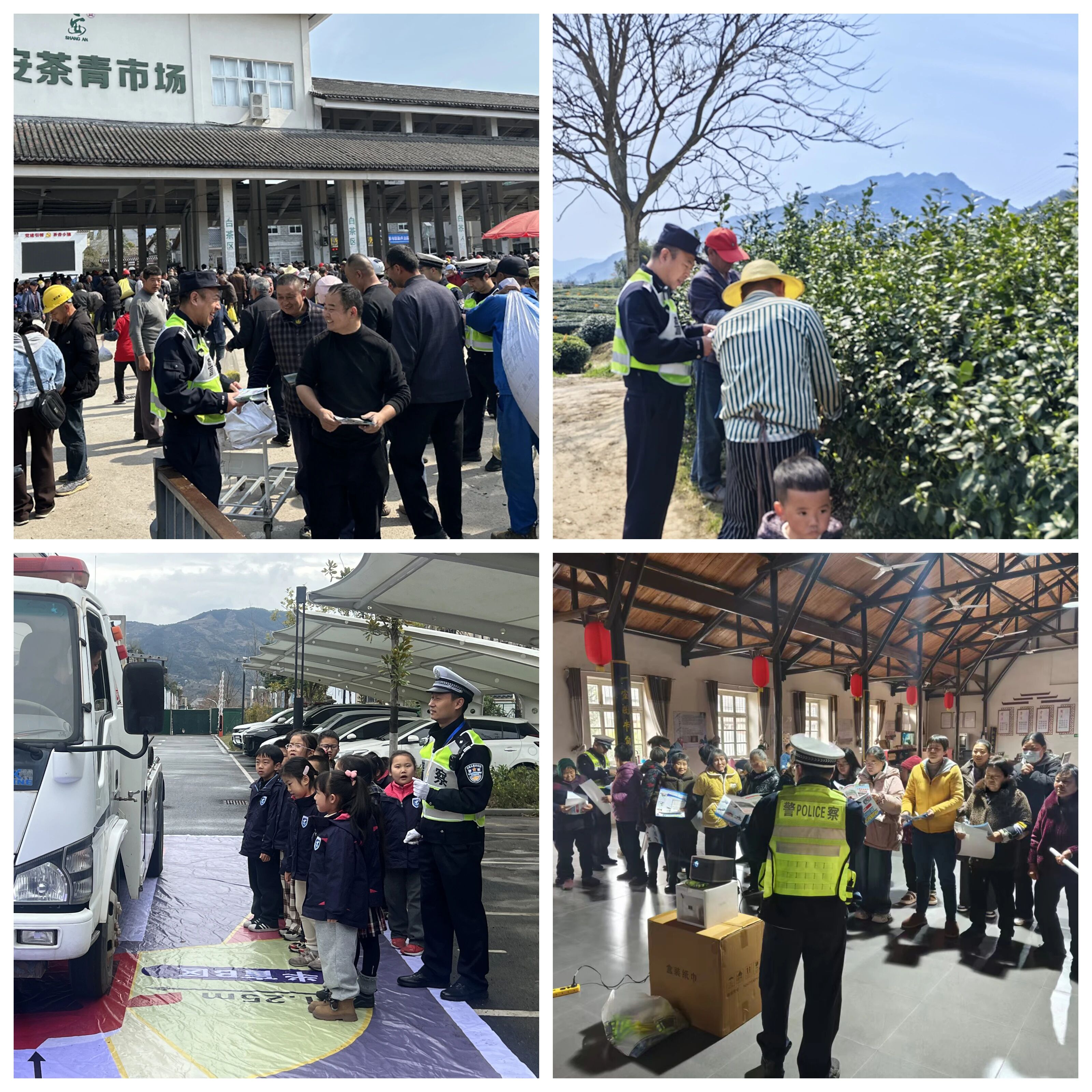 【丽水】时值采茶季,丽水交警深入茶园、茶青市场,发动沿线村庄网格员,向村里的“一老一小”普及高速通行法规,重点讲解行人上高速的严重危害。同时,深入辖区学校及农村,通过摆放展板、播放案例宣传片,提醒村民春季出行严禁酒驾醉驾、超员超载,让安全之风吹遍田野乡村。