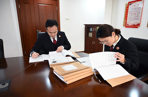 承办检察官翻阅案卷材料