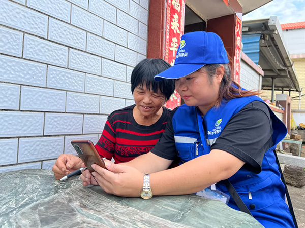网格员向群众讲解“平安漳州e家”小程序应用,引导群众通过“平安漳州e家”上报遇到的问题和困难