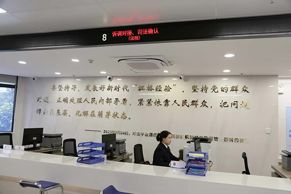走进安溪县综治中心,法院诉讼服务窗口、司法确认受理中心、速裁法庭等功能区一应俱全,群众在这里可享受咨询、立案、调解、速裁等“一站式”服务。