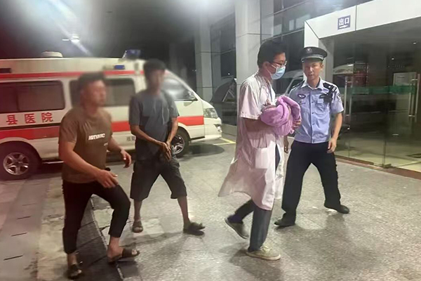 日前,福建省漳州市诏安县公安局西潭派出所副所长沈东远带领辅警许晓明、吴逸雄在辖区内巡逻。行至沈寨村时,一对年轻夫妇焦急万分地拦住警车,妻子怀里抱着一名幼儿。