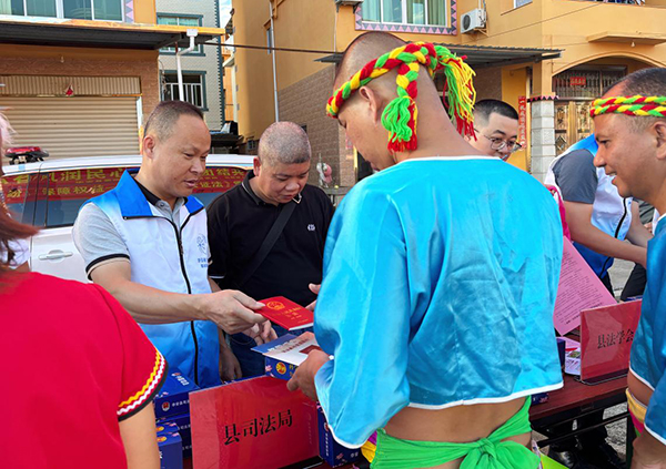 8月8日,华安县委政法委与县司法局走进高山族村寨,开展“非遗共学+普法”活动。其间,“蒲公英”普法志愿者巧借非遗知识,用“闽南语+汉语”双语解读民法典邻里纠纷条款,实现非遗传承与普法宣传“双向赋能”。截至目前,华安县已开展双语普法活动12场,发放资料2000余份,以“一个都不落下”的决心,让法治甘霖浸润高山族同胞心田。