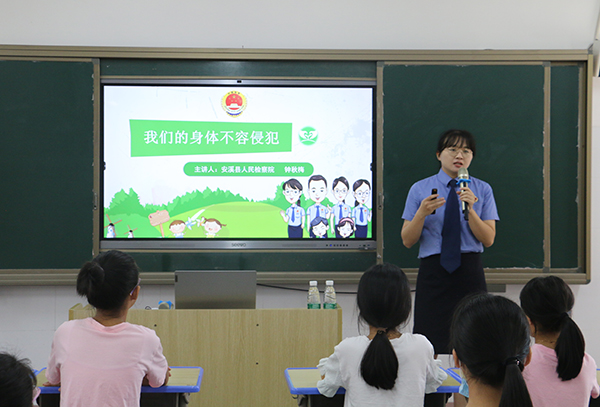 在福建省泉州市安溪县某乡镇中心小学,该校法治副校长、安溪县人民检察院检察官陈志裕正通过互动小游戏,帮助同学们了解身体隐私部位,掌握预防性侵害的要领。这是陈志裕担任法治副校长的第三年,也是他将法治种子播撒进乡村振兴画卷的寻常一幕。