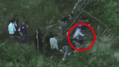 山林中荆棘遍布,搜救队员一边劈砍杂草开路,一边高声呼喊老人的名字,警用无人机在天空盘旋,警犬在地面穿梭,一场与时间赛跑的空地协同搜救紧张推进。