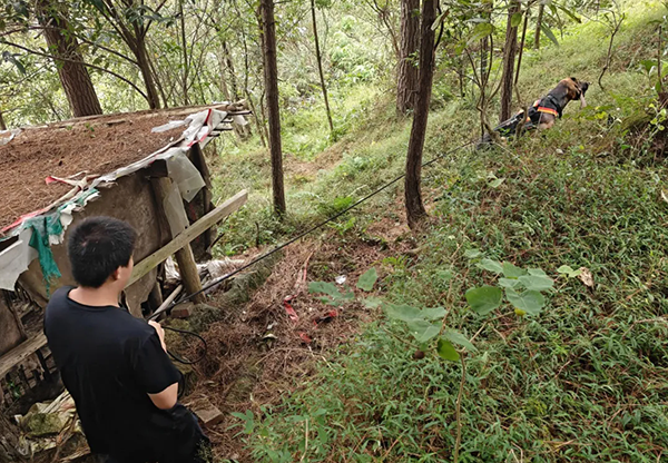 警犬们鼻尖快速翕动,耳朵微微竖起,飞速穿梭于草丛和林间,不放过任何一丝线索。“汪汪汪!”凭借敏锐的嗅觉,警犬们先后指引民警找到老人掉落的鞋子拐杖、以及砍伐的木柴,并确定了老人走失的范围,为搜救工作明确了方向。