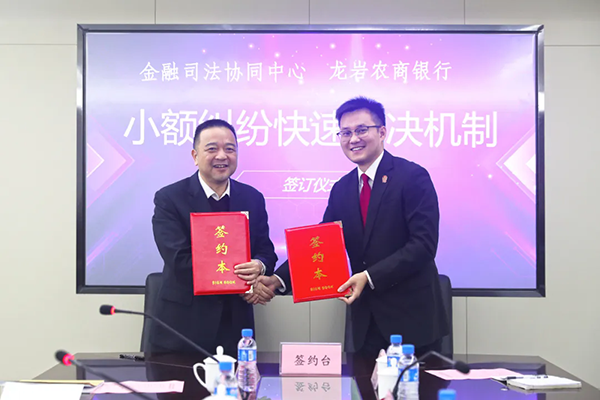 龙岩市普惠金融司法协同中心与农商行建立小额金融纠纷快速解决机制
