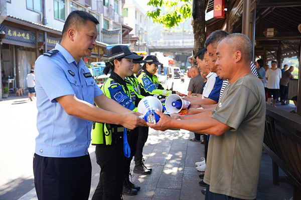 当天,寿宁县公安局携手利得隆茶业、寿品梅茶叶厂等爱心企业和个人,向当地二三轮车驾驶员集中捐赠安全头盔500顶,将安全防护的温暖送到群众手中。这场以“送安全、送知识、送装备”为核心的宣传活动,正是寿宁县公安局“1+N”多维联动宣传机制的鲜活呈现。