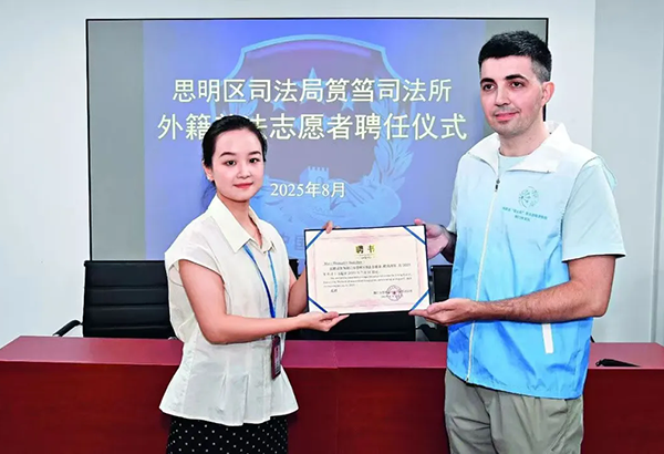 厦门市思明区司法局筼筜司法所为外籍普法志愿者颁发聘书