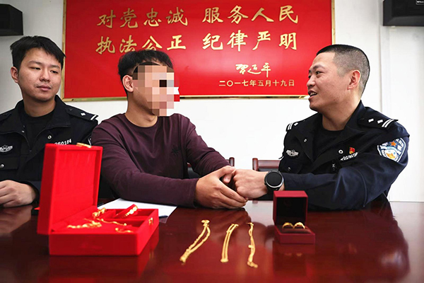 在返还被骗资金现场,民警拆解诈骗分子藏黄金的套路