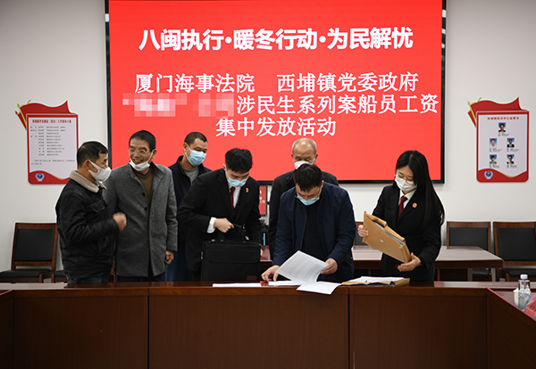 厦门海事法院联合当地政府开展涉民生案件船员工资集中发放活动