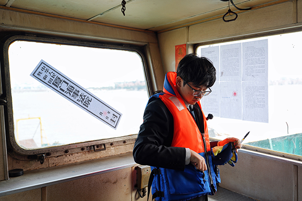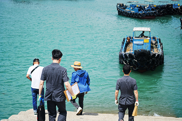 厦门海事法院执行干警正准备搭乘摆渡船前往案涉船舶锚地