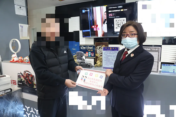福州市鼓楼区检察院检察官向电竞酒店从业者发放提示标贴