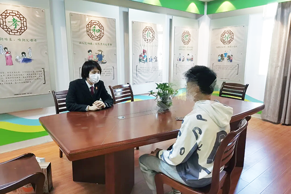 龙文法院家事少年审判庭法官与失足少年面对面沟通交流