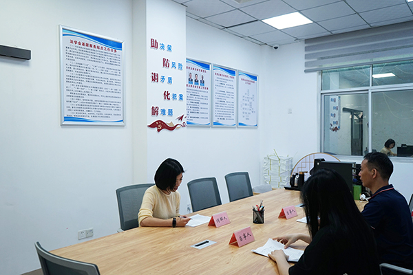 在晋江市罗山街道综治中心法学专家咨询工作室内,法学专家在调处纠纷