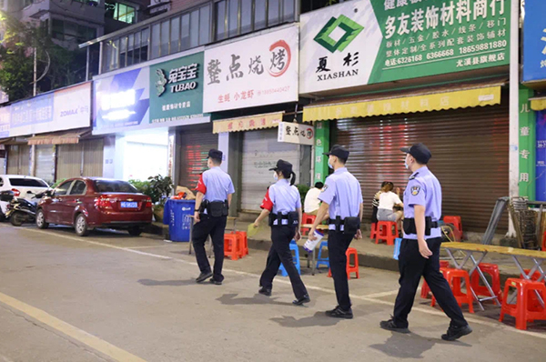 胡雨恬(左二)正在进行夜间巡逻