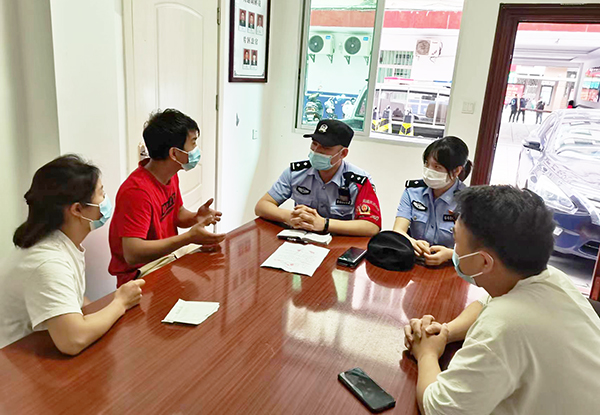 胡雨恬走进辖区商铺为商户进行反诈宣传