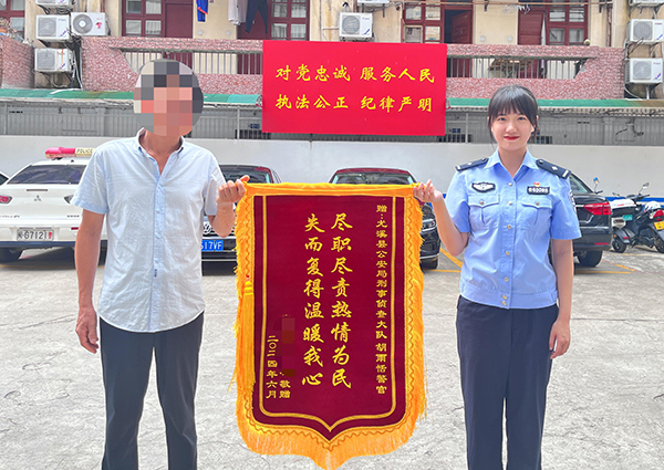 胡雨恬收到群众赠送的锦旗