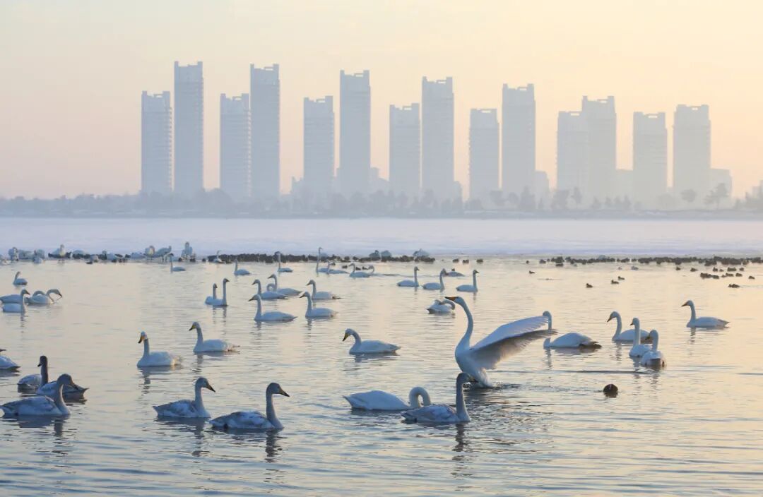 在山东省荣成市,每年冬天,上万只大天鹅如约而至,大天鹅国家级自然保护区成为“东方天鹅王国”;春夏之交,数万只黑尾鸥与黄嘴白鹭飞临海驴岛,这里成为鸥鹭乐园。
