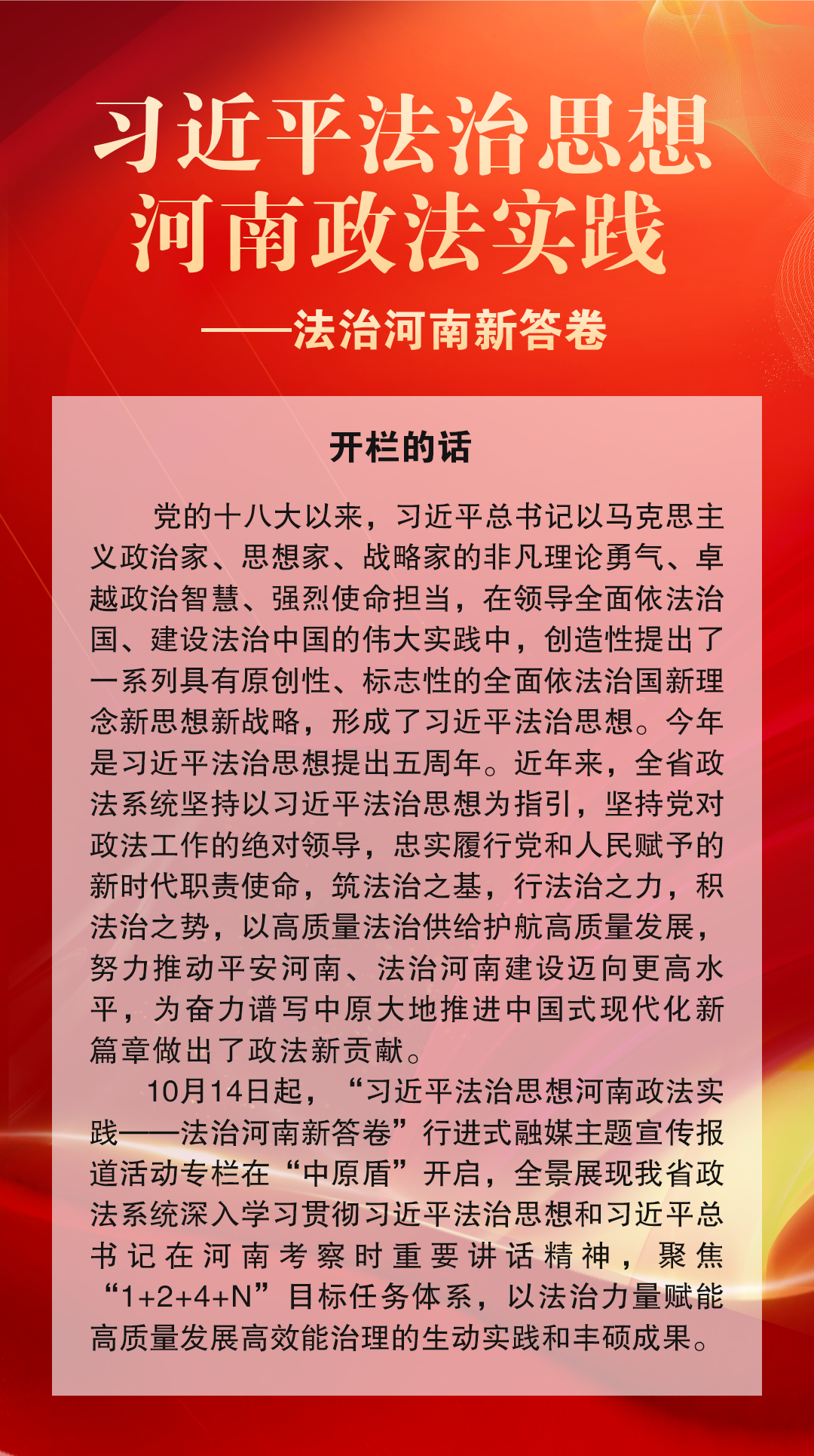 执法治之笔,书为民之卷。从守护群众平安和谐到厚植企业发展沃土,从推进基层高效能治理到优化法治化营商环境……漯河市将法治之力转化为发展之能、惠民之举,绘就群众幸福底色,一幅充满力量与温度的法治漯河画卷在沙澧大地徐徐铺展。