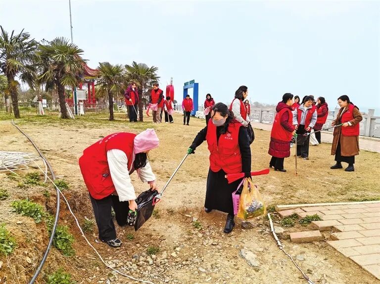 淅川县水利局组建巾帼护河队开展护河净滩活动。王娟摄