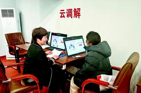 △入驻濮阳市濮阳县综治中心的濮阳县人民法院特邀调解员利用信息平台,线上调解一起民事纠纷。