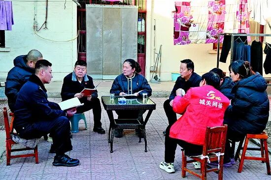 △濮阳市濮阳县城关镇综治中心联合镇司法所工作人员、网格员、社区民警来到案发地调解一起家事纠纷。