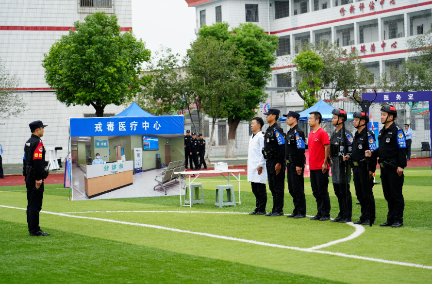 本次试赛设置队列指挥、徒手防卫与控制、警情处置三个集体项目和单警基础体能、单警警械具使用两个单人项目,涵盖戒毒工作全场景实战技能。赛场上,参赛队员精神抖擞、动作规范,从队列转法的整齐划一,到警棍盾牌术的刚劲有力,再到体能比拼中的极限突破,每一个科目都展现出戒毒民警日复一日训练的扎实功底。