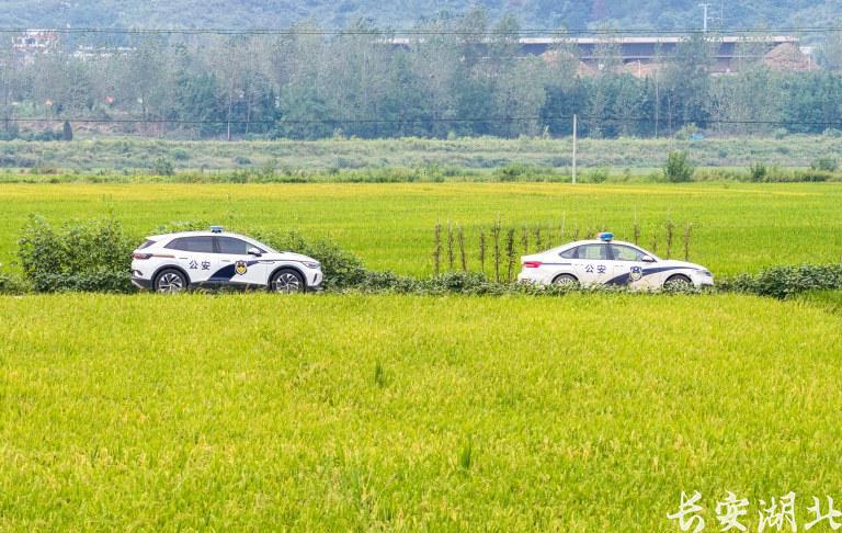 警车在田间巡逻