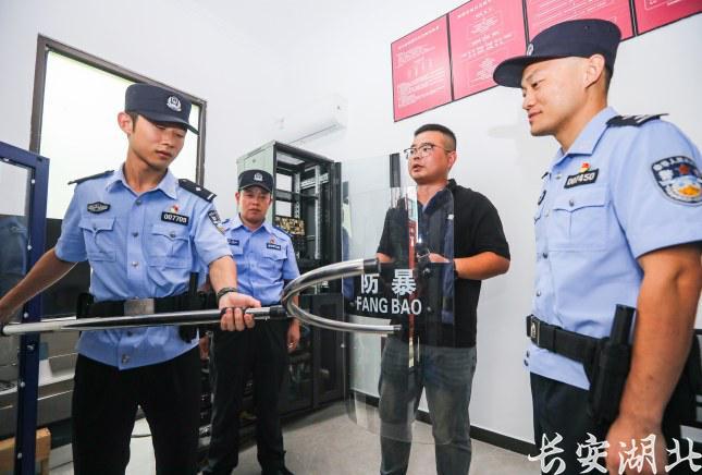 民警在检查景区安保装备