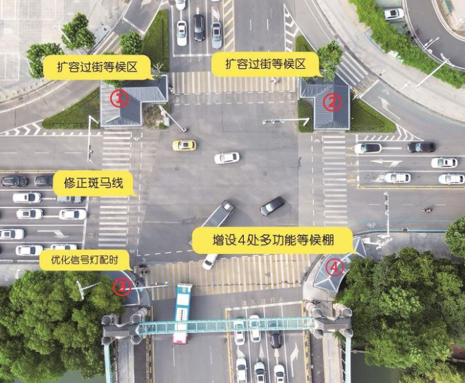 紧邻楚河汉街与中南医院的楚汉路杏林西路路口,武昌交警联合多部门开展了系统性优化:路口增设多功能等候棚和行人信号灯、绿化带削减拓宽了通行空间、人行横道实施“零高差”改造。市民陈女士说:“现在有了宽敞的等候区和遮阳棚,带孩子过街心里踏实多了!”数据显示,该路口改造后通行秩序明显改善,安全事故隐患大幅下降。