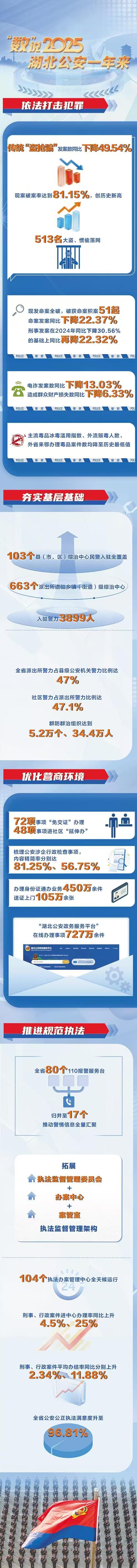 这一年,湖北公安机关用法治引领工作提质增效,纵深推进民生案件大会战。传统“盗抢骗”破案率创新高,刑事案件发案量达近11年来新低。湖北“一市一台”改革做法获公安部面向全国公安系统推广。