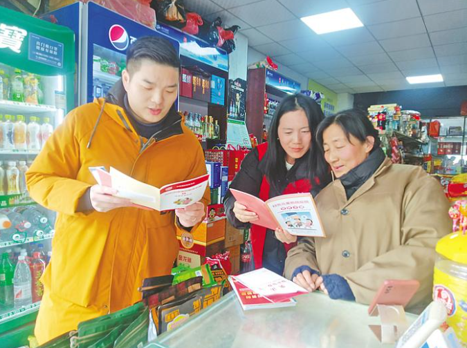 襄阳市襄州区司法局工作人员与律师进商铺宣讲。
