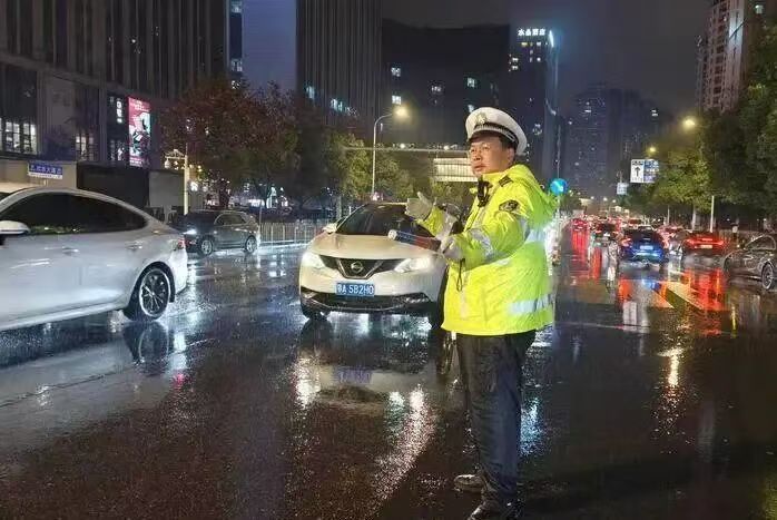 ▲武汉交警在洪山某商圈指挥疏导交通