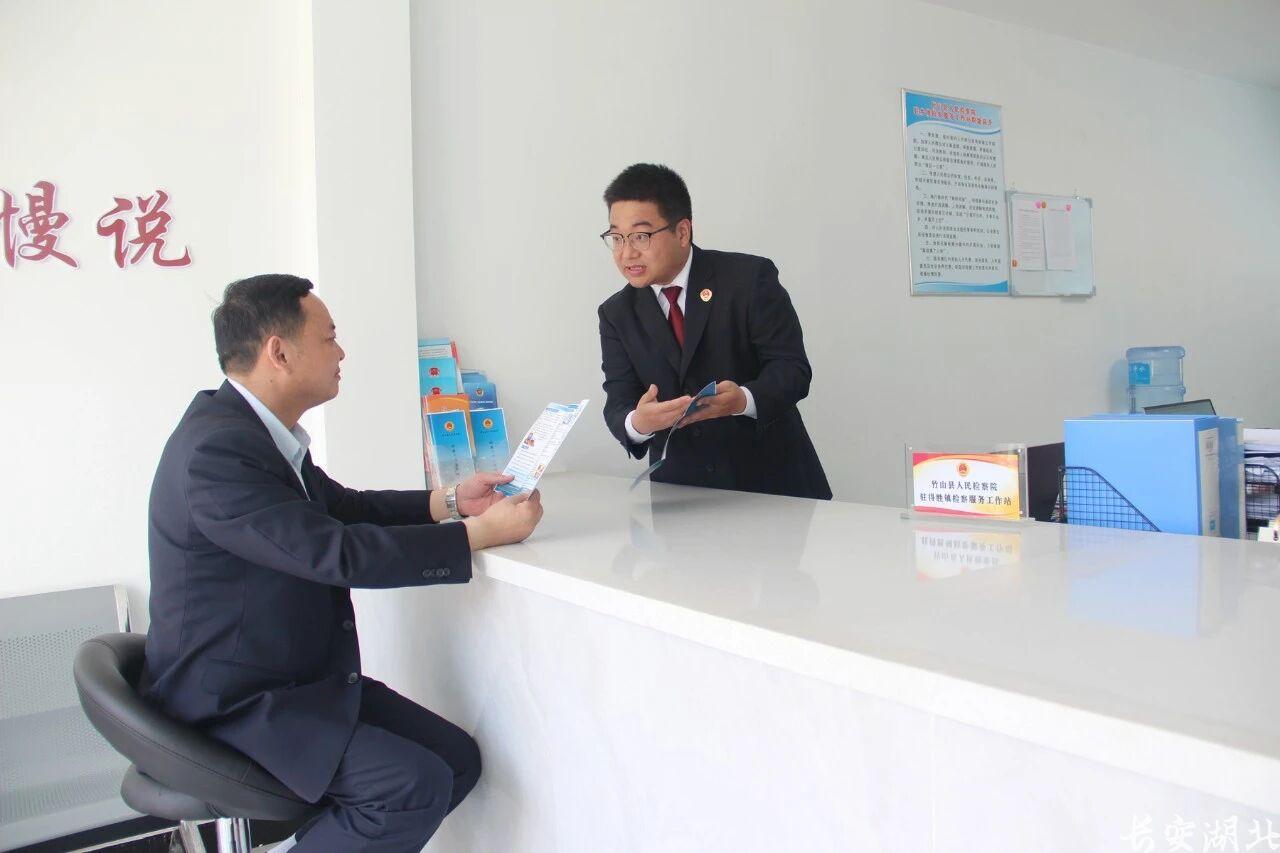 竹山县检察院检察干警在口子乡镇检察服务联络站接待来访群众,提供“家门口”的检察服务,打通检察便民利民惠民“最后一公里”。